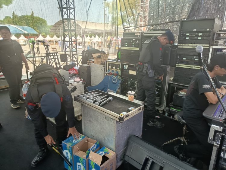 Pelaksanaan dimulai pukul 10.30 WIB dengan koordinasi antara Unit Jibom dan pihak panitia acara. Selanjutnya, pukul 11.50 WIB dilakukan pemeriksaan menyeluruh di area panggung utama, belakang panggung, ruang tunggu artis, area foodcourt, stand medis, stand sponsor, hingga area toilet.