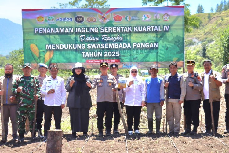 MetroNusantaraNews.com, Aceh Tengah – Sebagai wujud dukungan nyata terhadap program pemerintah dalam mewujudkan Swasembada Pangan Tahun 2025, jajaran Polres Aceh Tengah bersama unsur Forkopimda melaksanakan Penanaman Jagung Serentak Kuartal IV di lahan produktif Kampung Mulie Jadi, Kecamatan Silih Nara, Rabu (8/10/2025).