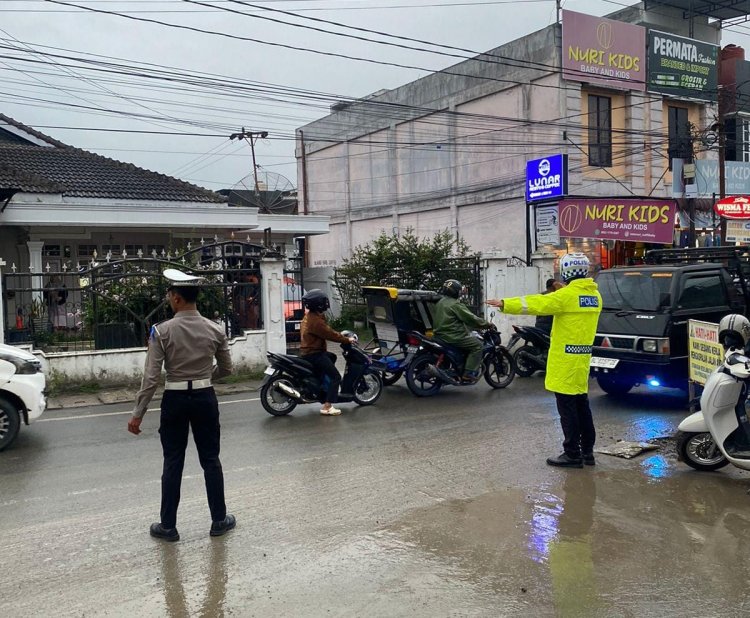 Hujan Deras Tak Surutkan Semangat, Satlantas Polres Aceh Tengah Tetap Kawal Arus Lalu Lintas