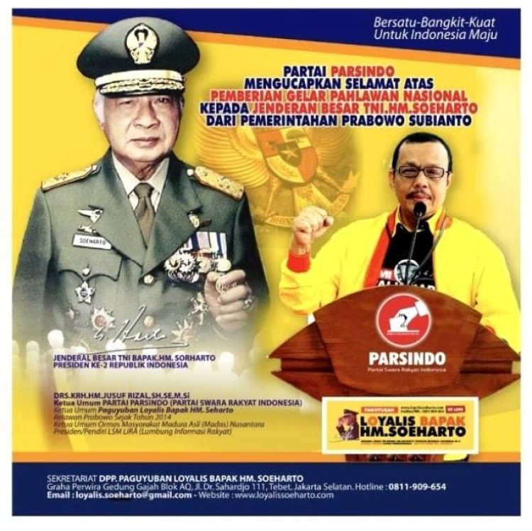 Jenderal Besar TNI HM. Soeharto Dianugerahi Gelar Pahlawan Nasional, Loyalis Soeharto Apresiasi Presiden Prabowo