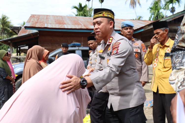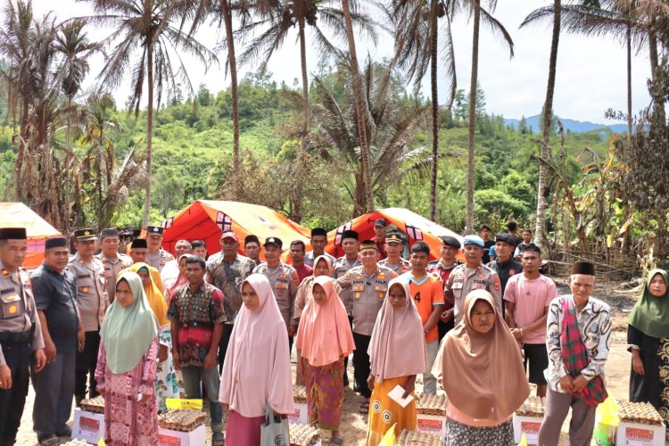 Kapolres yang hadir bersama para Pejabat Utama Polres Aceh Tengah, didampingi Kapolsek Linge serta aparatur kampung setempat, memberikan bantuan sembako dan tali asih kepada lima kepala keluarga korban terdampak langsung.