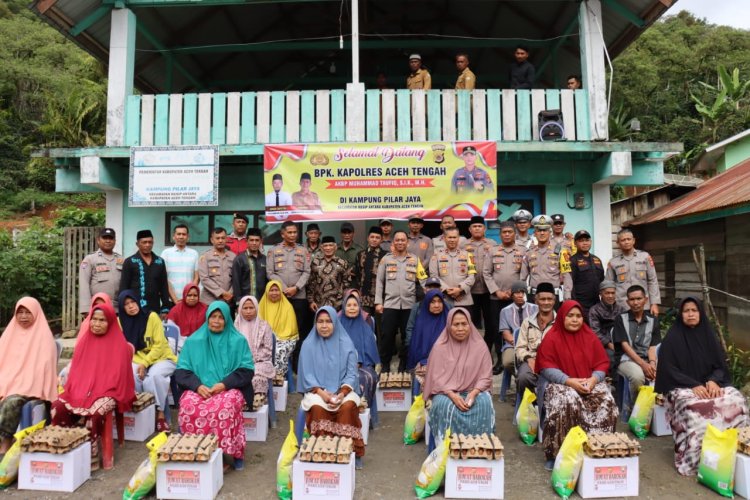 Disana 20 paket sembako dan tali asih disalurkan kepada 20 kepala keluarga yang membutuhkan, penyaluran bantuan sosial diserahkan langsung oleh Kapolres Aceh Tengah AKBP Muhamad Taufiq, S.I.K., M.H., yang hadir langsung menyapa warga dan menyerahkan bantuan tersebut.