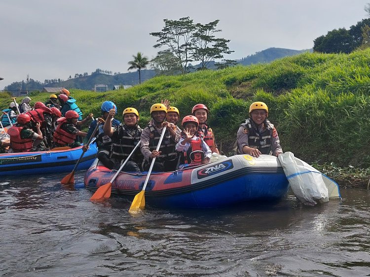 Dengan mengenakan pakaian lapangan, Kapolres AKBP Muhamad Taufiq dan personel tampak memungut sampah bersama para peserta di sepanjang aliran Sungai Peusangan, sumber air utama yang menghidupi masyarakat Aceh Tengah.