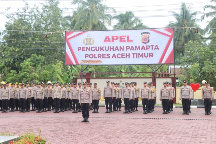 MetroNusantaraNews.com, Aceh Timur - Kepala Kepolisian Resor Aceh Timur, Polda Aceh AKBP Irwan Kurniadi, S.I.K. memimpin Apel Pengukuhan Perwira Samapta (Pamapta) di lingkungan Polres Aceh Timur, Senin, (20/10/2025) pagi.