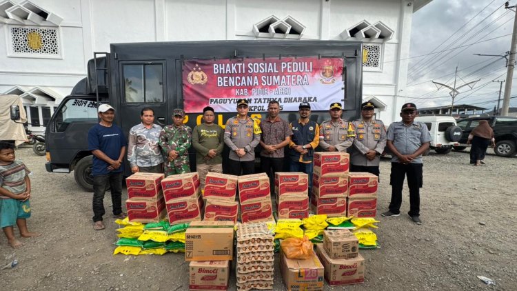MetroNusantaraNews.com, Pidie - Paguyuban Tathya Dharaka Akpol 2005 mengirimkan sejumlah bantuan untuk masyarakat di Kabupaten Pidie yang terdampak banjir. Bantuan tersebut diterima langsung oleh Kapolres Pidie AKBP Jaka Mulyana, SIK, MIK yang merupakan alumnus Akpol 2005, untuk kemudian disalurkan kepada warga di sejumlah dapur umum masyarakat. Kamis (4/12/2025)