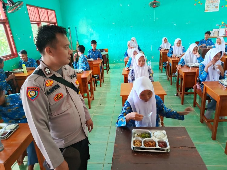 Kapolsek Monitoring Pembagian MBG Kepada Pelajar di Negeri Besar