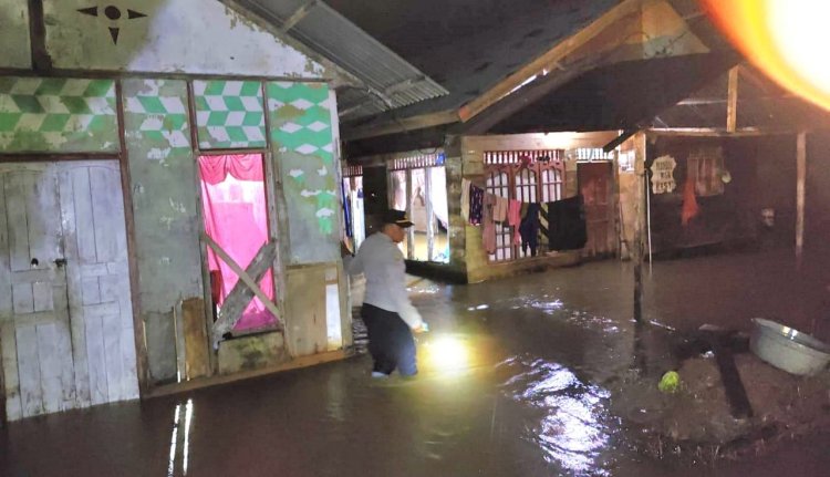 MetroNusantaraNews.com, Aceh Timur - Kapolsek Nurussalam, Polres Aceh Timur Polda Aceh, Iptu Desherry bersama anggotanya melaksanakan pengecekan langsung ke sejumlah gampong dlama wilayah hukumnya yang terdampak banjir pada Senin, (24/11/2025) malam.