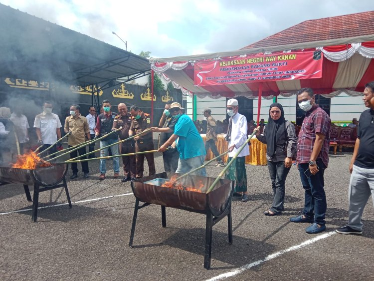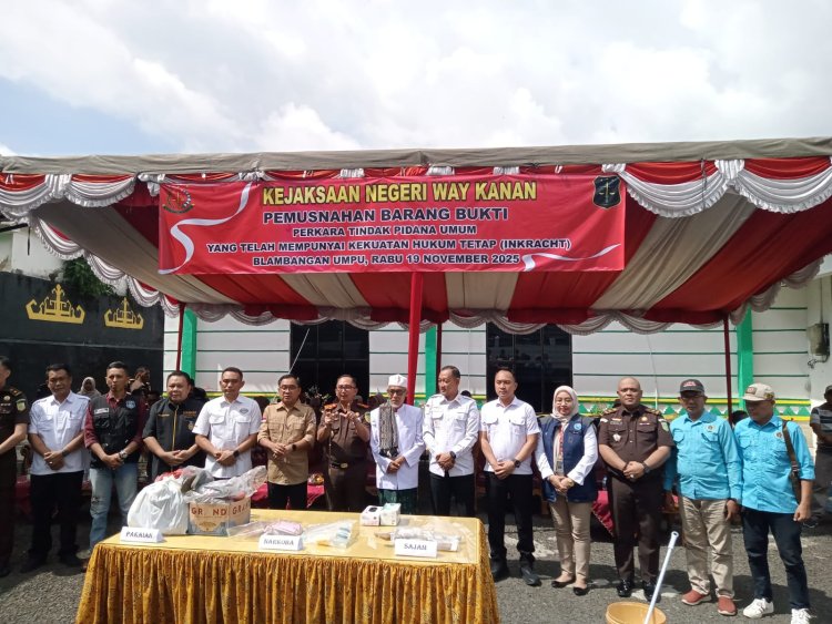Metronusantaranews.com - Way Kanan — Kejaksaan Negeri (Kejari) Way Kanan melaksanakan pemusnahan barang bukti dari perkara tindak pidana umum yang telah berkekuatan hukum tetap (inkracht). Kegiatan tersebut digelar di halaman kantor Kejari pada Rabu (19/11).