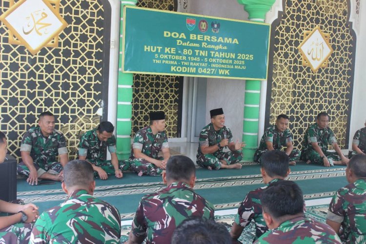 Kegiatan doa bersama ini dipimpin langsung oleh Komandan Kodim 0427/Way Kanan, Letkol Arm Sigit Windarto, S.Sos., M.Han, dan diikuti oleh seluruh prajurit dan anggota Kodim sebagai bentuk ikhtiar spiritual serta harapan agar TNI senantiasa diberi kekuatan dan perlindungan dalam menjalankan tugas menjaga kedaulatan bangsa.