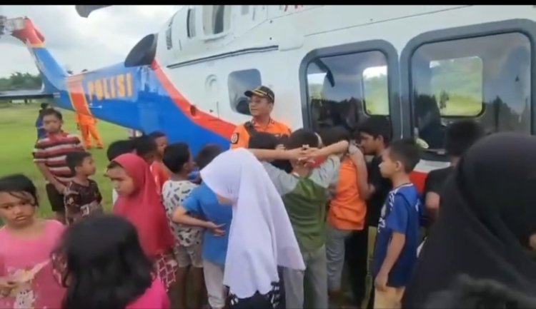 Kru Helikopter Polri Dampingi Warga di Tengah Bencana, Anak-Anak Aceh Tamiang Jadi Sumber Semangat