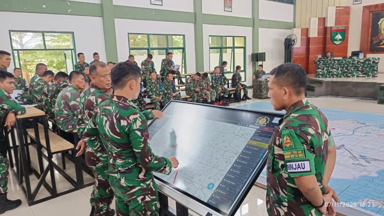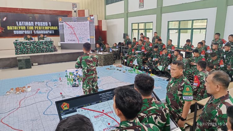 Metronusantaranews.com - Natuna – Pusat Simulasi Tempur (Pussimpur) Kodiklatad mendukung modernisasi latihan TNI AD melalui penerapan Meja Desain Operasi (MDO) pada kegiatan Tactical Floor Game (TFG) sebagai puncak Latihan Posko I (Latposko I) YTP Batalyon Komposit 1/Gardapati Kodam XIX/Tuanku Tambusai, Natuna, Jumat (7/11/2025).