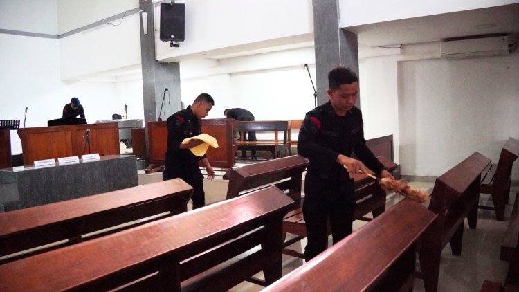 Sebanyak 20 personel Brimob yang dipimpin oleh AKP I Gusti Bagus S, S.H. terlibat langsung dalam kegiatan ini. Sejak pagi, para personel bergotong royong membersihkan area dalam gereja, halaman, hingga fasilitas penunjang kegiatan ibadah. Selain kerja bhakti, Brimob juga menyerahkan bantuan sembako kepada perwakilan jemaat yang diterima langsung oleh pengurus gereja, Bapak Andre dan Bapak Didi.