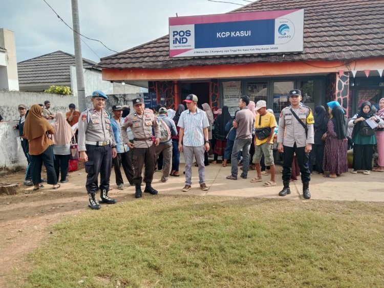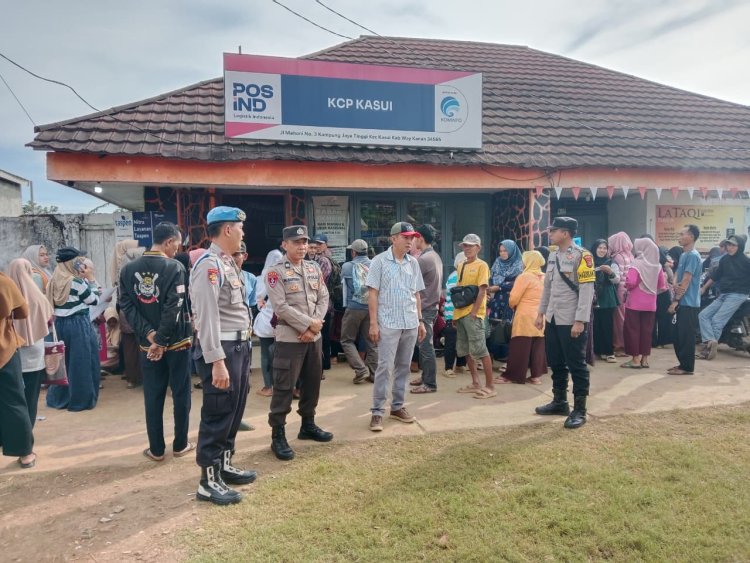 Monitoring Penyaluran BLTS Kesra di Kantor Pos, Polsek Kasui Gencar Sosialisasi Layanan 110