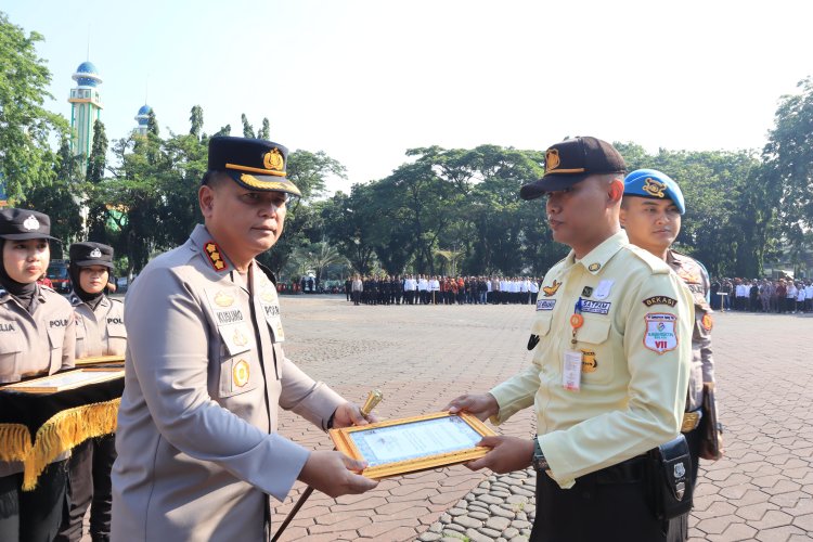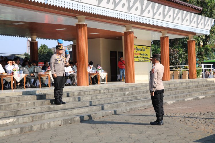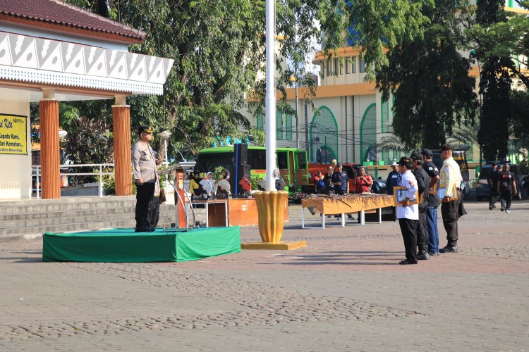 elemen, Kapolres Metro Bekasi Kota Kombes Pol Kusumo Wahyu Bintoro, S.H., S.I.K., M.H., memimpin Apel Kebangsaan dengan tema "Penguatan Potensi Masyarakat Guna Mendukung Terwujudnya Keamanan dan Ketertiban di Kota Bekasi."