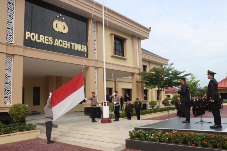 MetroNusantaraNews, Aceh Timur - Kepala Kepolisian Resor Aceh Timur, Polda Aceh, AKBP Irwan Kurniadi, S.I.K. memimpin upacara memperingati Hari Pahlawan Nasional di Lapangan Apel Sarja Arya Racana, Senin, (10/11/2025) pagi.