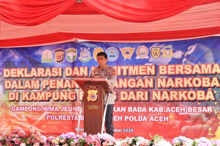 Hal itu disampaikan Kapolda Aceh Irjen Pol. Marzuki Ali Basyah dalam kegiatan Deklarasi dan Komitmen Bersama Penanggulangan Narkoba di Kampung Bebas dari Narkoba, Desa Rima Jeuneu, Kecamatan Peukan Bada, Kabupaten Aceh Besar, Rabu, 15 Oktober 2025.