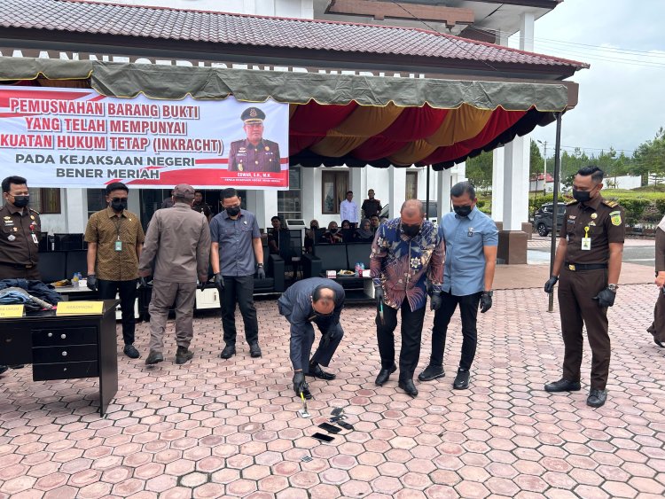 Polres Bener Meriah Hadiri Pemusnahan Barang Bukti Yang Telah Memiliki Kekuatan Hukum Tetap (INCRACHT) di Kejaksaan Negeri Bener Meriah