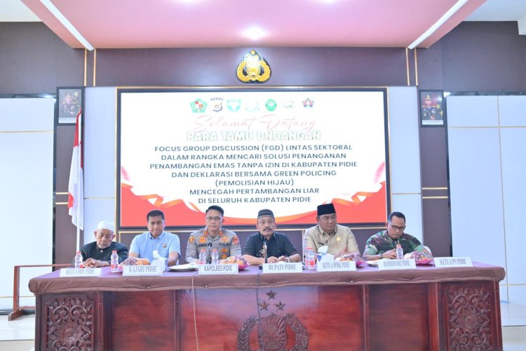 MetroNusantaraNews.com, Pidie – Polres Pidie menggelar Focus Group Discussion (FGD) membahas penanggulangan Penambangan Emas Tanpa Izin (PETI) dengan pendekatan green policing, bertempat di Aula Wira Satya Polres Pidie, Jumat (3/10/2025).