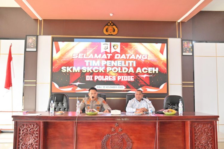 MetroNusantaraNews.com, Pidie – Polres Pidie menerima kunjungan tim peneliti Survey Kepuasan Masyarakat (SKM) SKCK Polda Aceh yang bertempat di Aula Wira Satya Polres Pidie. Senin (10/11/2025).