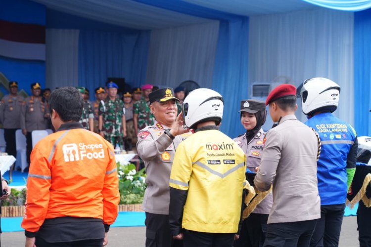 Metronusantaranew.com - Lampung – Polri memperkuat sinergi keamanan berbasis masyarakat melalui pelaksanaan Apel Ojek Online Kamtibmas Polda Lampung yang dipimpin Wakapolri Komjen Pol Dedi Prasetyo mewakili Kapolri pada Rabu, 3 Desember 2025, di Lapangan Apel Mapolda Lampung. Apel yang dihadiri langsung Wakapolri ini melibatkan 900 driver ojek online dan menjadi penutup rangkaian Apel Ojol Kamtibmas Nasional 2025. Rangkaian ini sebelumnya digelar di empat Polda: pertama di Polda Metro Jaya pada 20 Oktober 2025 dengan melibatkan 10.000 driver ojol; kedua di Polda Jawa Timur pada 1 November 2025 dengan 4.425 driver; ketiga di Polda Jawa Barat pada 8 November 2025 dengan 5.000 driver; dan keempat di Polda DIY pada 21 November 2025 dengan 3.500 driver. Dengan pelaksanaan apel di Lampung, total peserta seluruh rangkaian apel mencapai 22.925 driver ojek online.
