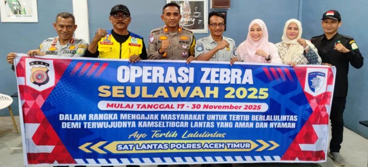 “Dengan dukungan dari Dishub, Jasa Raharja dan instansi terkait lainnya, melalui Operasi Zebra Seulawah 2025 ini, kami berharap masyarakat utamanya dalam wilayah hukum Polres Aceh Timur semakin sadar akan pentingnya keselamatan berlalu lintas. Ini bukan hanya tugas Kepolisian, tetapi tanggung jawab bersama.” Terang Kasat Lantas Polres Aceh Timur AKP Hardi, S.H.(FAHRID)