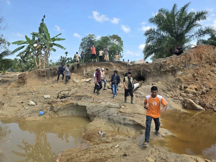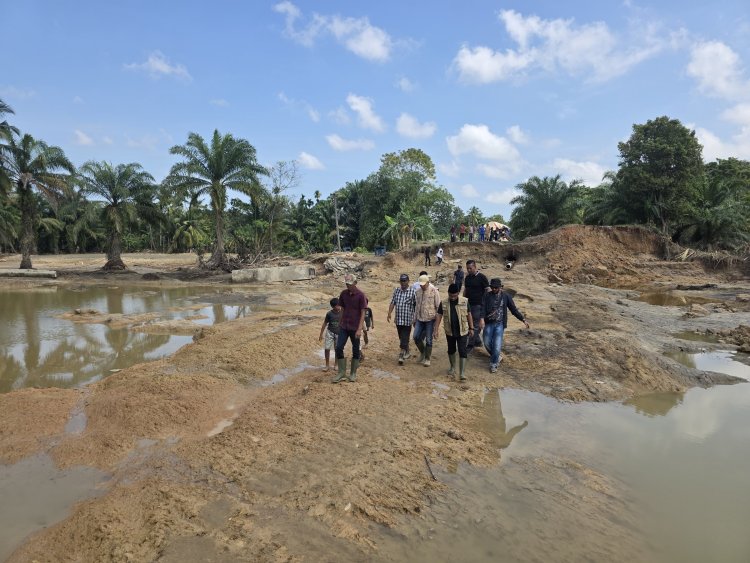Anggota DPD RI asal Aceh, H. Sudirman atau dikenal Haji Uma, bersama Wakil Bupati Aceh Timur, T. Zainal Abidin, S.Pd.I., MH, meninjau langsung kondisi tanggul Sungai Arakundo yang jebol di Desa Arakundo, Kecamatan Simpang Ulim.