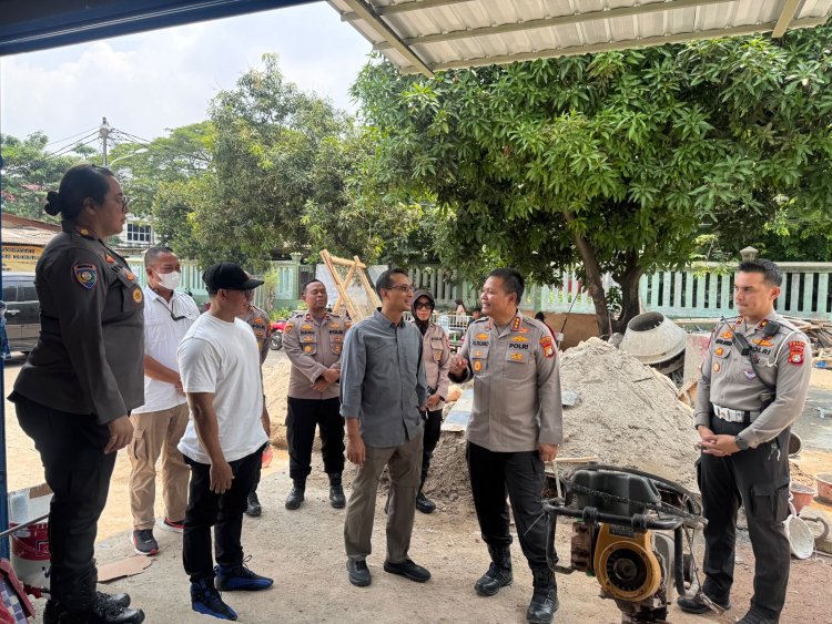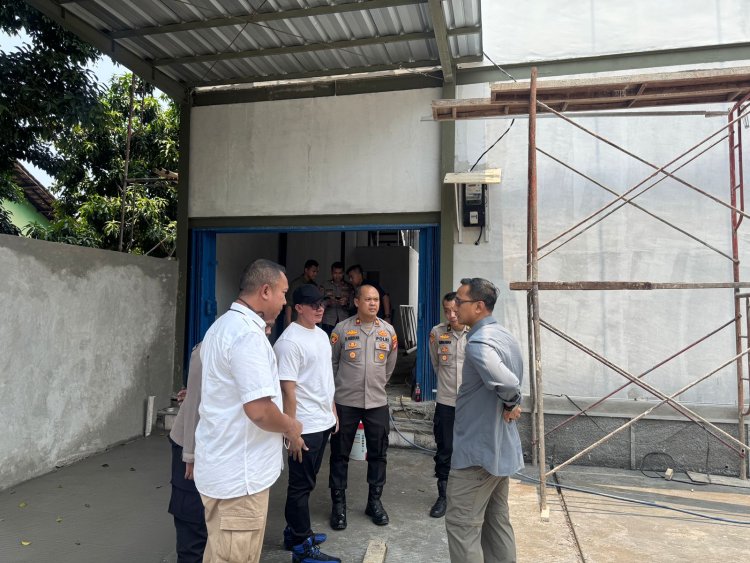 Kapolres Kombes Pol Kusumo Wahyu Bintoro didampingi Dirpolairud Kombes Pol Joko Sadono meninjau lokasi dan menjelaskan detail proyek tersebut, yang berlokasi di wilayah Mapolsek Bekasi Selatan.