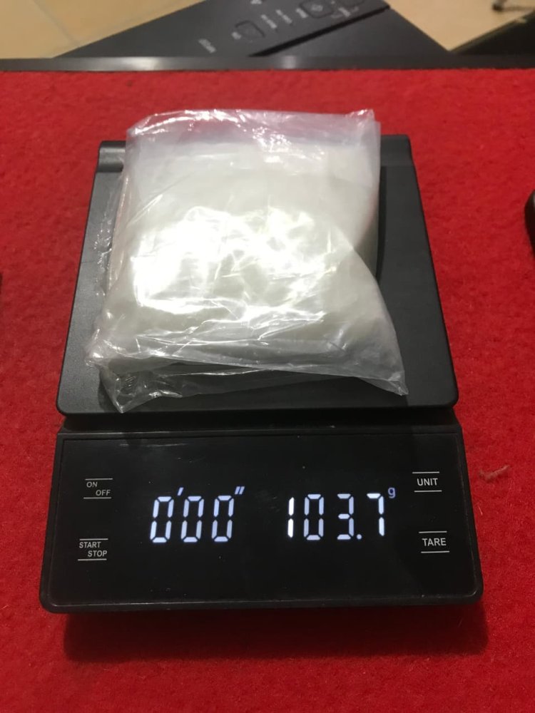 Ketika dilakukan penggeledahan, petugas menemukan satu paket sedang narkotika jenis sabu dengan berat 103,70 gram yang dibungkus menggunakan kertas warna kuning, serta satu unit ponsel merk Vivo warna biru di saku celana pelaku.