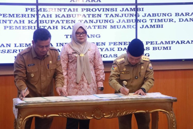 Metronusantaranews.com - Jambi – Wakil Bupati Tanjung Jabung Barat, Dr. H. Katamso, S.A., S.E., M.E., menandatangani komitmen bersama antara Pemerintah Provinsi Jambi dengan Pemerintah Kabupaten Tanjung Jabung Barat, Kabupaten Tanjung Jabung Timur, dan Kabupaten Muaro Jambi. Komitmen tersebut berkaitan dengan Penetapan Lembaga Independen Penentu Pelamparan Reservoir Cadangan Minyak dan Gas Bumi di Wilayah Kerja (WK) Migas Jabung dan Migas Lemang, Selasa (4/11).